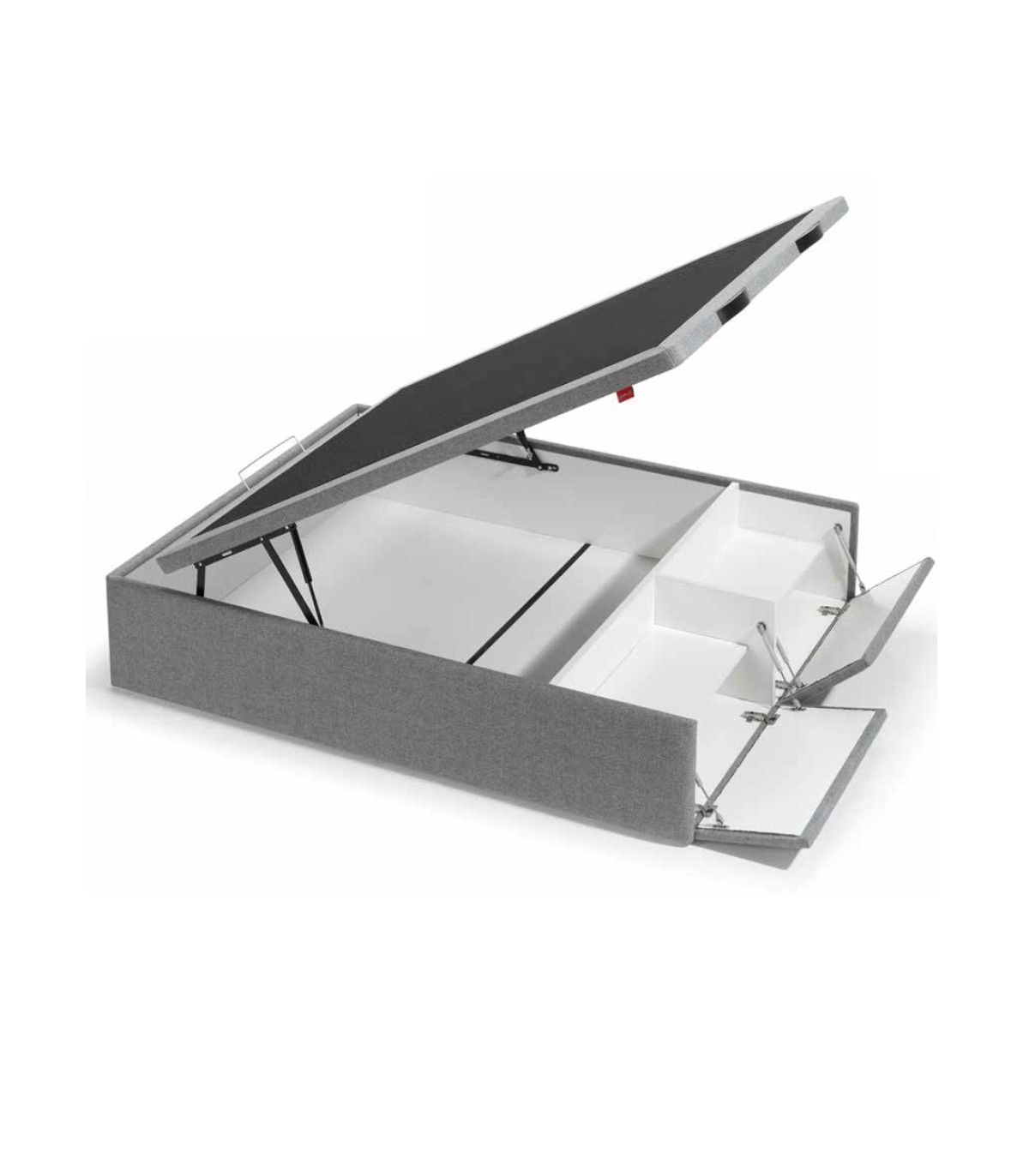 - Opción de tapa partida, en los canapés de ancho 135 o superior es posible que la tapa entera no quepa por los accesos a la vivienda. Las dos mitades de la tapa partida se unen con tornillos en el montaje del canapé, incluyendo una barra estabilizadora y quedando la tapa de una sola pieza