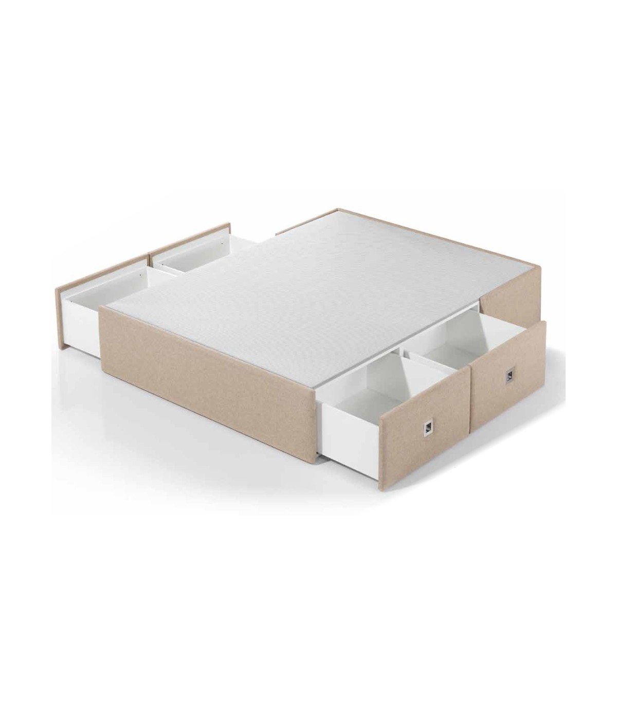• Canapé tapizado con 4 cajones de apertura lateral y tapa fija