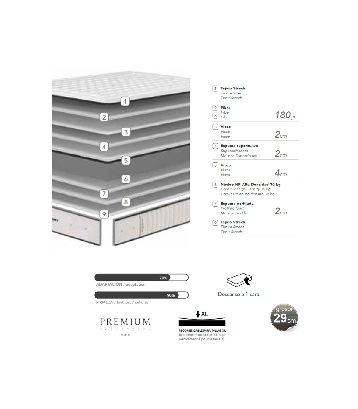 Colchón viscoelástico con núcleo de HR 30 Kg/m3