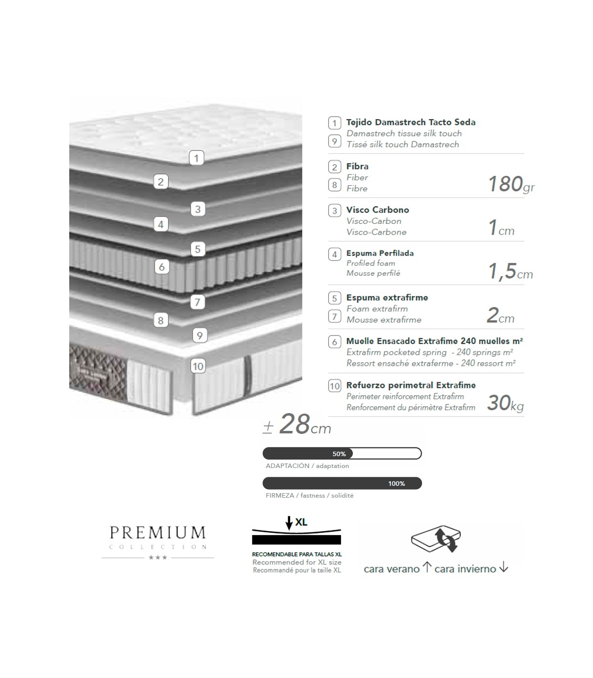 - Núcleo extrafirme de muelles ensacados independientes (240 muelles/m2)