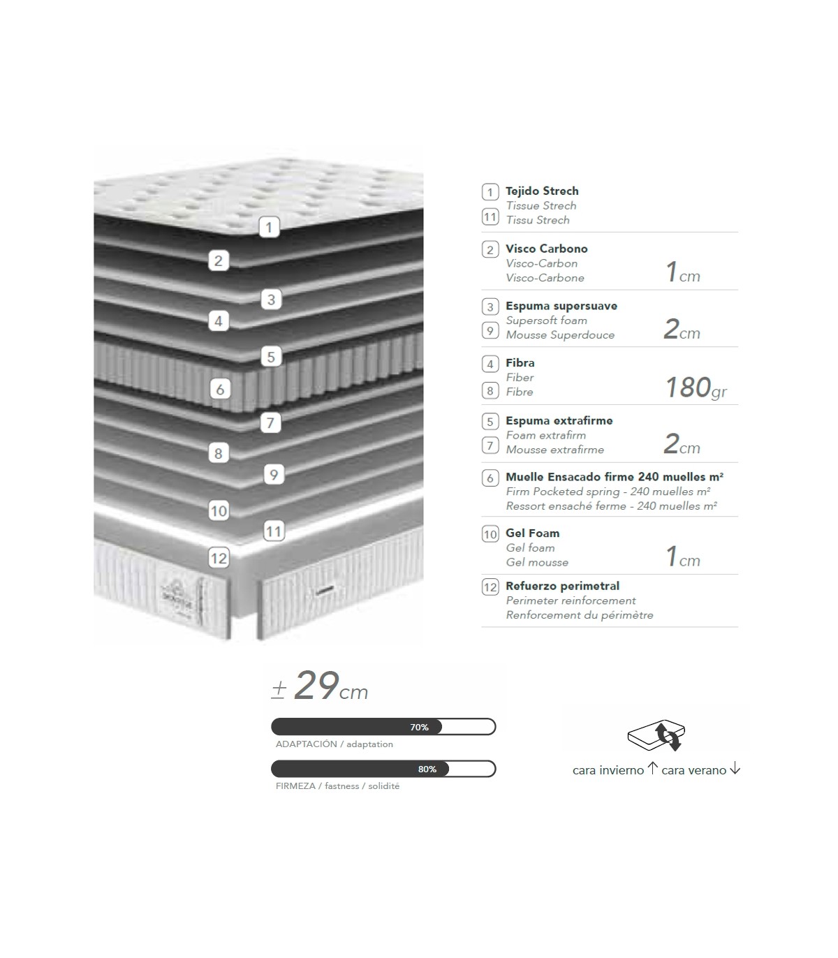 • Núcleo firme de muelles ensacados independientes (240 muelles/m2)