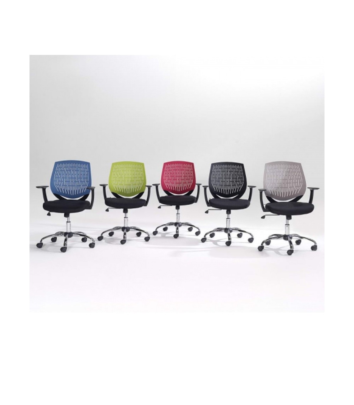 - Respaldo ergonómico en abs inyectado en colores negro, azul, gris visón, rojo o pistacho