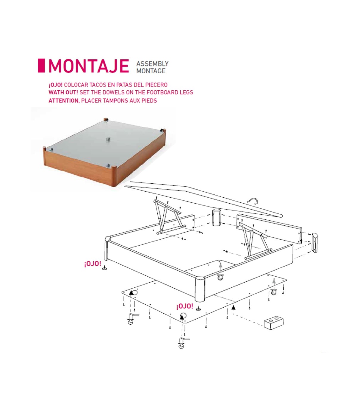 - Necesita un hueco inferior bajo el fondo del canapé de 5 cm y se atornilla directamente sobre el fondo del canapé